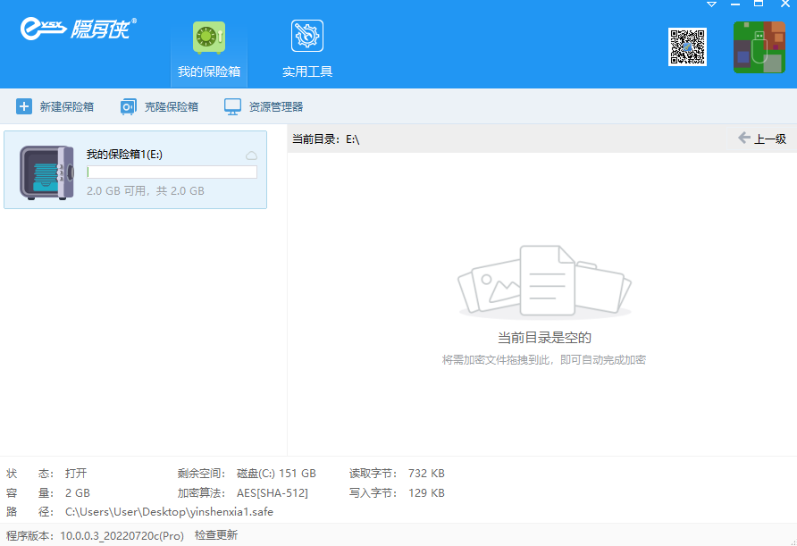 3、无缝集成系统:新建的加密保险箱可以当做独立盘符用,方便储存。