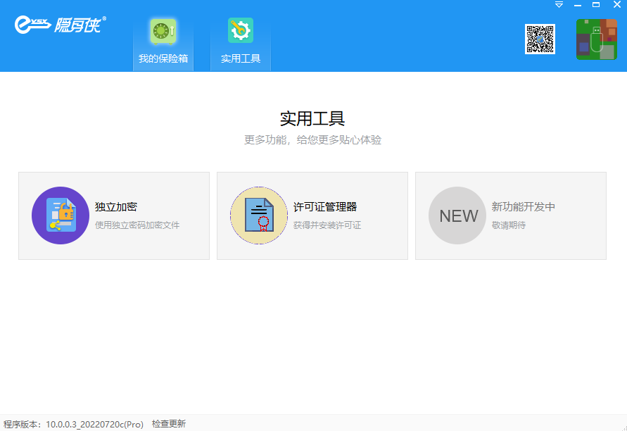 3、点击实用工具,可以看到独立加密、许可证管理器等功能。