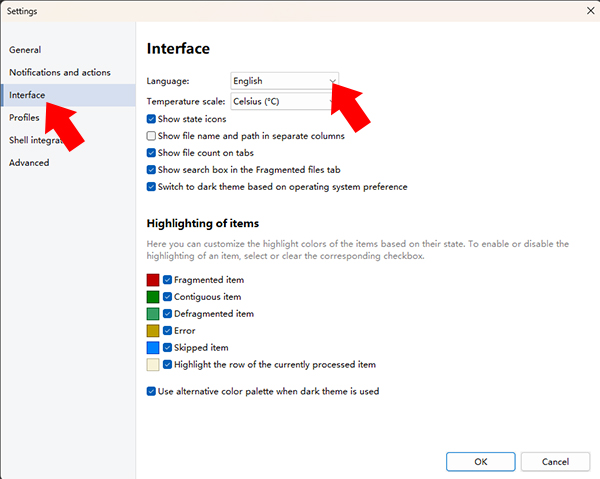 2、点击InterFace,找到Language。