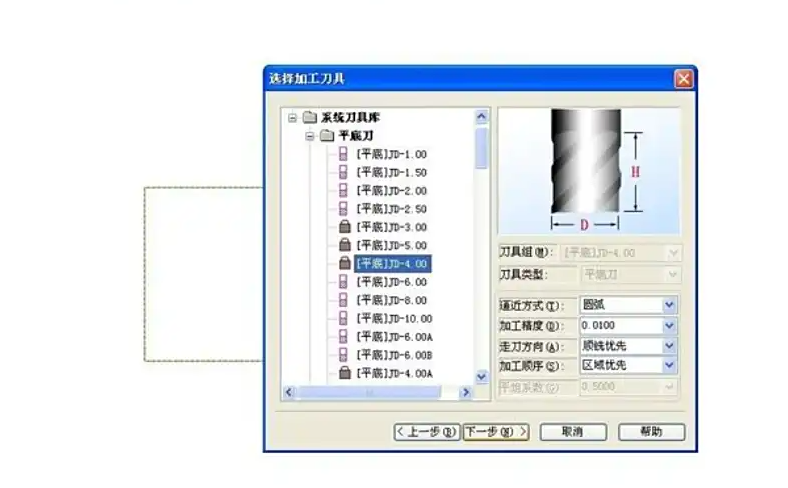 2、接着我们就可以对加工范围进行设定,选择对应的加工刀具。