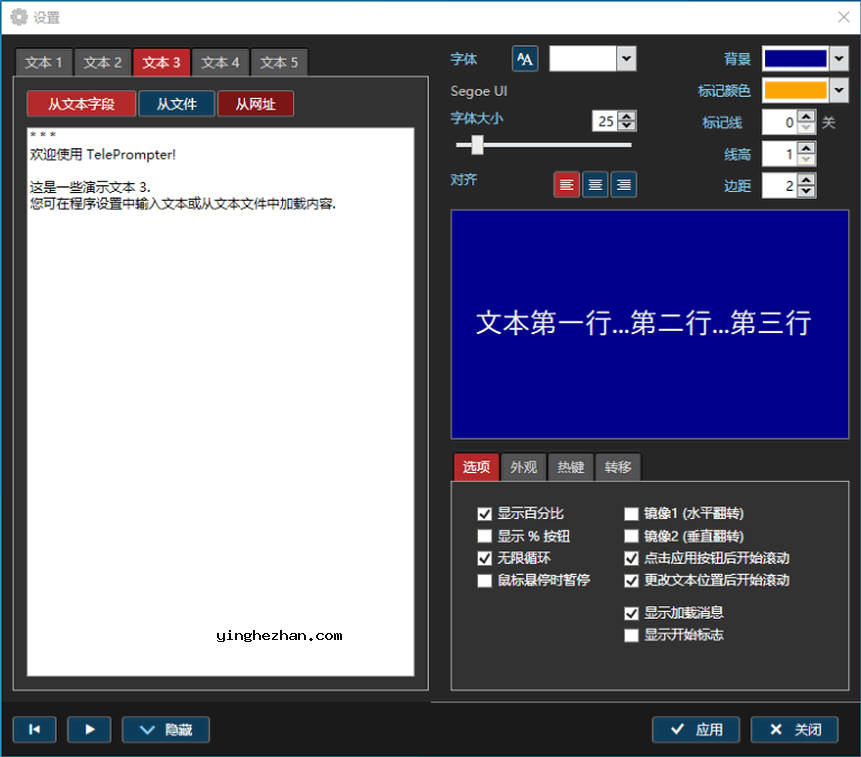 TelePrompter中文汉化版是一款专业的提词器软件,它能够在电脑屏幕上显示滚动文字,帮助演讲者、主播或视频创作者在录制时流畅地阅读文稿,避免遗忘或卡顿,其支持自定义文字大小、颜色和滚动速度,并可以镜像显示文字,感兴趣的话快来下载看看吧。