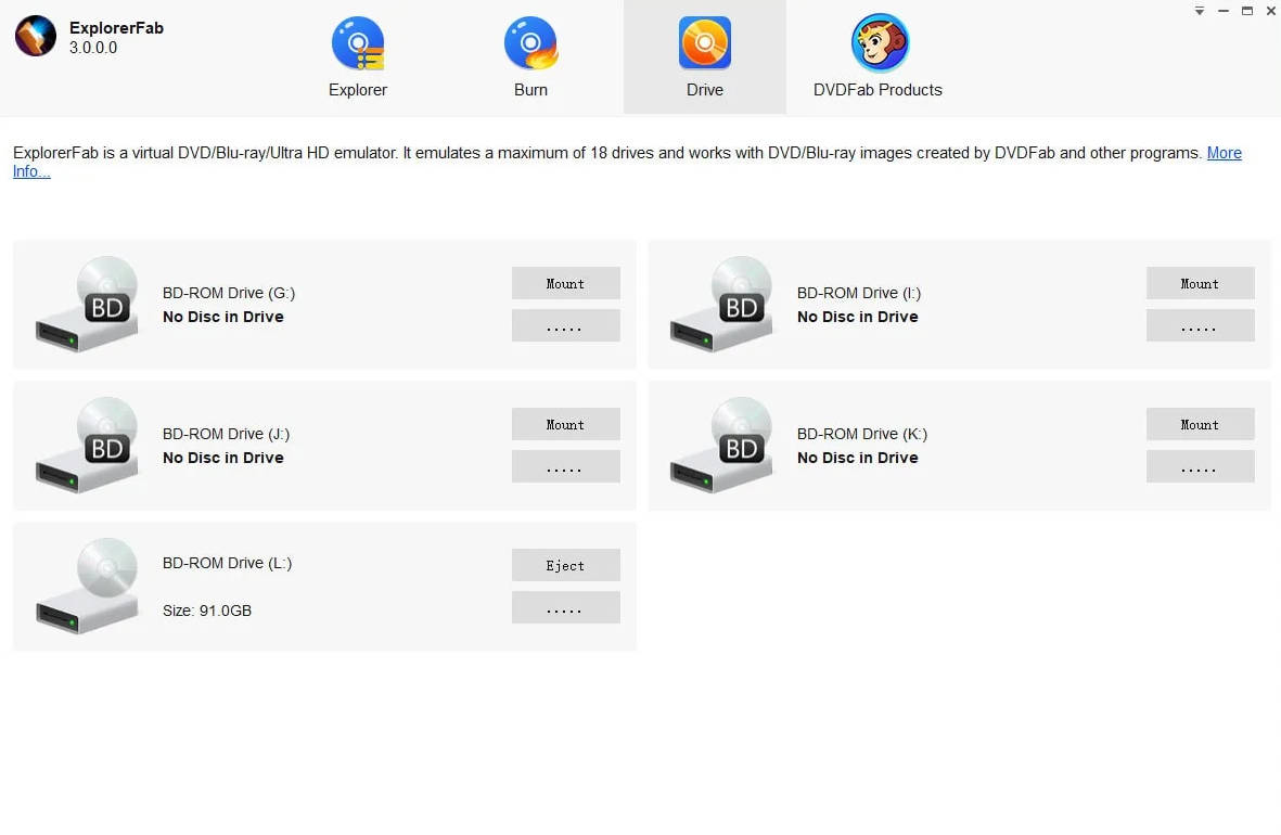 2、该软件还支持创建虚拟驱动器,可以同时加载多达18个DVD或蓝光格式的镜像文件,方便用户直接访问内容而无需使用物理光驱 。