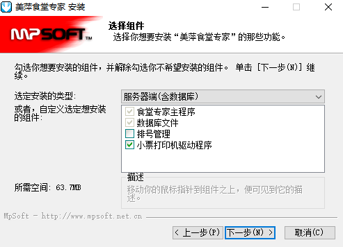 2、同意安装协议后选择安装的组件;