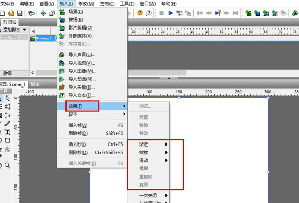 2、随后就可以找到基本特效中的渐近、缩放等功能,可以对特效进行添加。