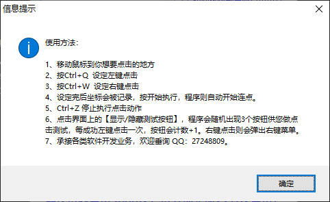 3、该软件还提供测试按钮用于验证点击准确性,并支持多点位点击及延迟设置,操作完成后按Ctrl+Z即可停止所有点击动作。