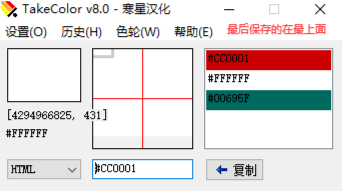 takecolor取色器是一款轻量便捷的屏幕取色软件,软件的功能非常强大,能轻松捕捉屏幕上的颜色并将颜色提取出来。除了提供取色的功能外还提供格式转换的功能,可以自行选择输出的颜色格式,满足用户的需求。