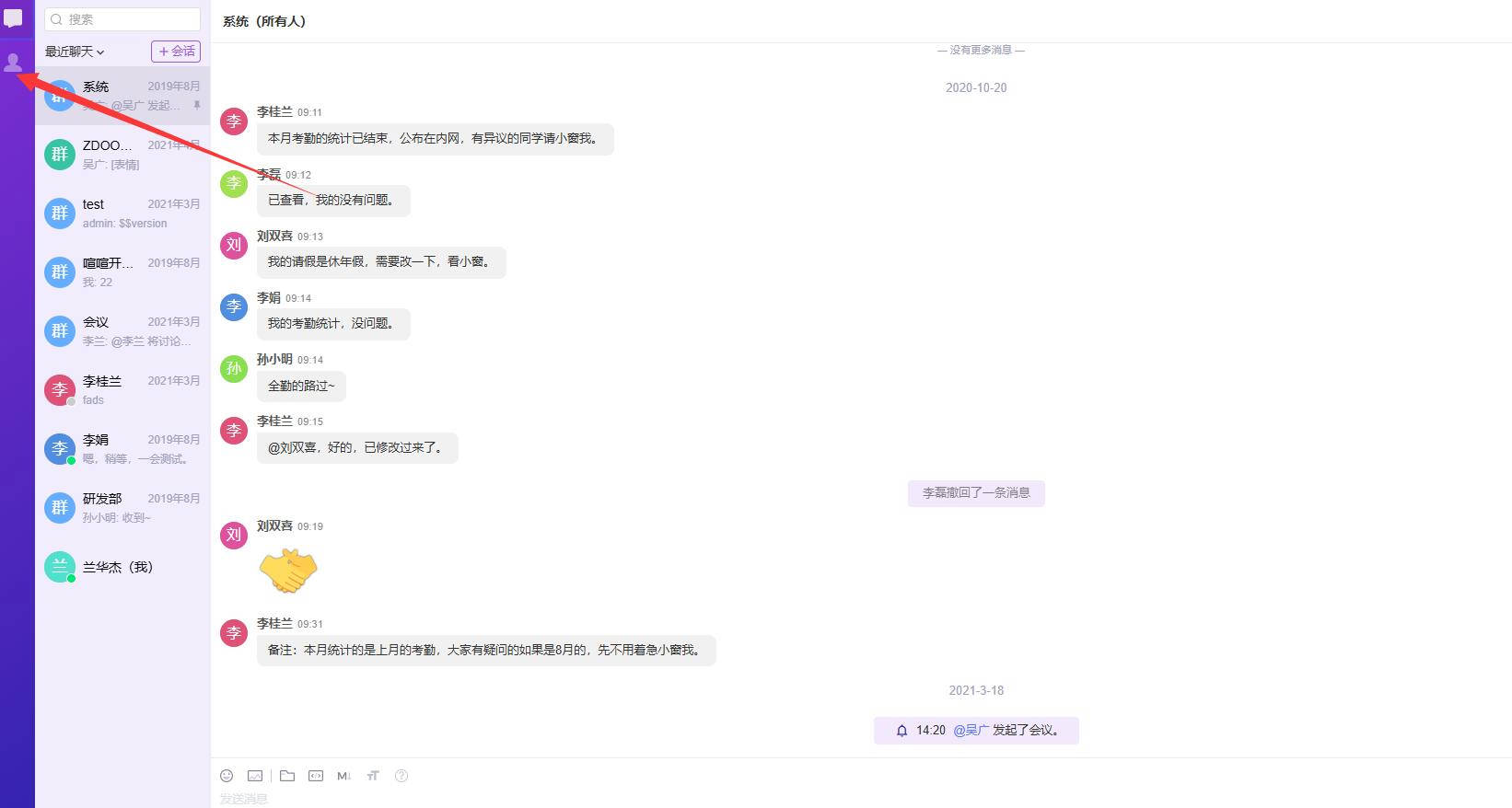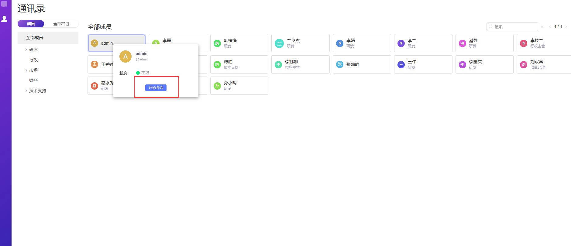 1、查看组织架构快速搜索部门或成员发起沟通。