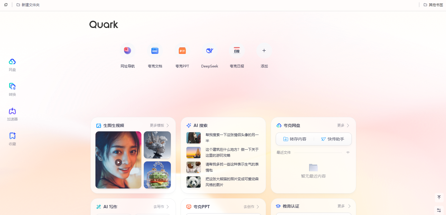 quark浏览器32位是一款深受用户喜欢的多功能智能浏览器,这款软件的界面非常简洁,其中不包含任何的广告,用户可以免费在软件当中进行各种内容的浏览,借助软件快速地畅游在互联网当中,为用户带来便利性。