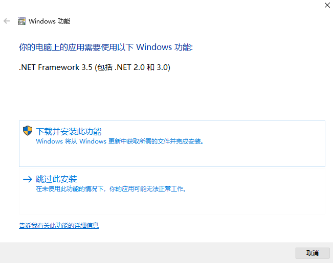 2、还需要安装.NET Framework 3.5 (包括.NET 2.0 和 3.0)。
