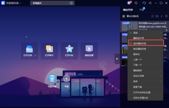 1、打开软件,右键点击播放列表,选择清空播放列表。