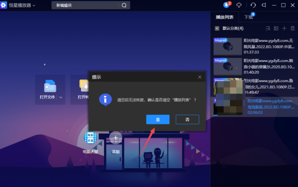 2、接着点击确认清空播放播放列表即可完成清空操作。