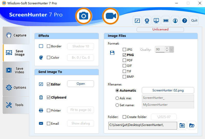可将截图输出到剪贴板、自动发送电子邮件或按自定义规则命名保存。