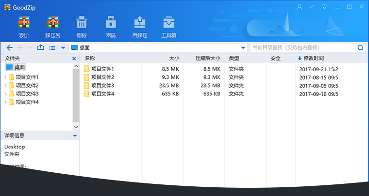 goodzip全能助手是一款专业的电脑文件解压缩软件,这款软件当中提供了非常丰富的功能能够确保文件及时的可以进行解压以及压缩,在面对各种文件的时候都能够根据需求来解压缩,非常值得用户进行选择。