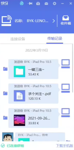 传输的时候没有任何的网络限速,可以在短时间内成功将需要的文件传输出去。