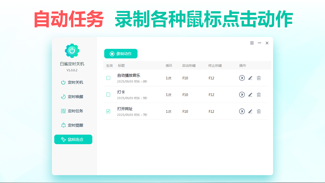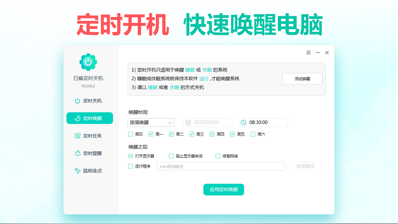 白鲨定时关机是一款进行自动定时任务处理的工具,用户可以利用这款软件在电脑当中进行各种任务的自动处理,设置好时间之后就能够自动化的处理,对于经常需要进行电脑系统功能运行的用户来说还是非常方便的。