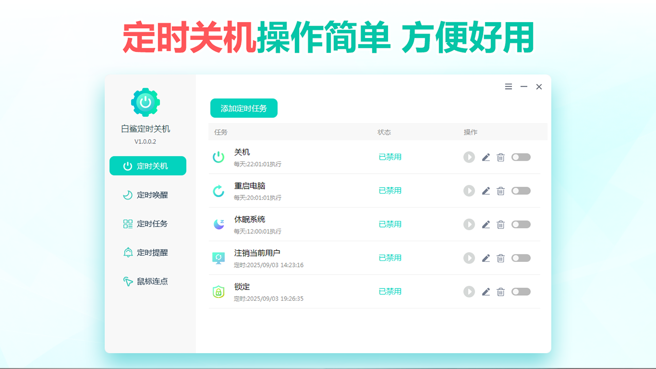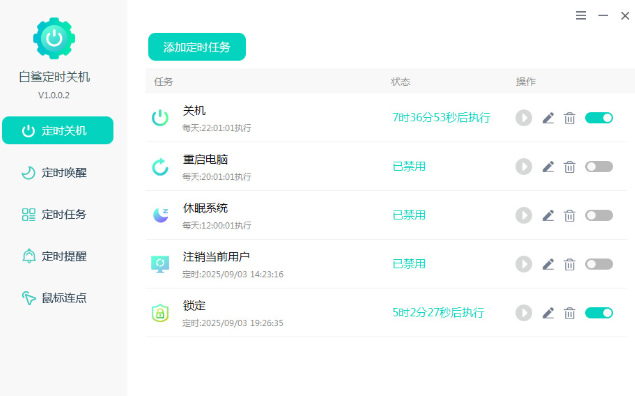 软件的主界面非常简洁,将其中所有的定时功能都一览无余的全部呈现了出来。