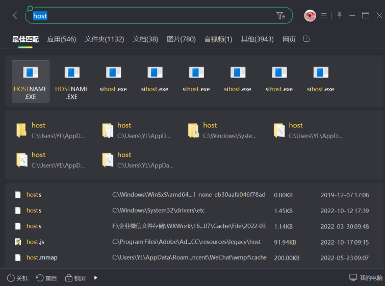 输入关键词之后就可以快速地在电脑磁盘当中进行指定资源的匹配,还是非常方便。