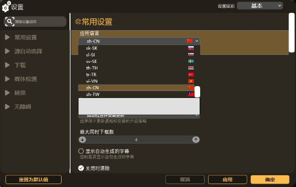 2、在常用设置中找到应用语言选择ZH-CN进行保存即可。