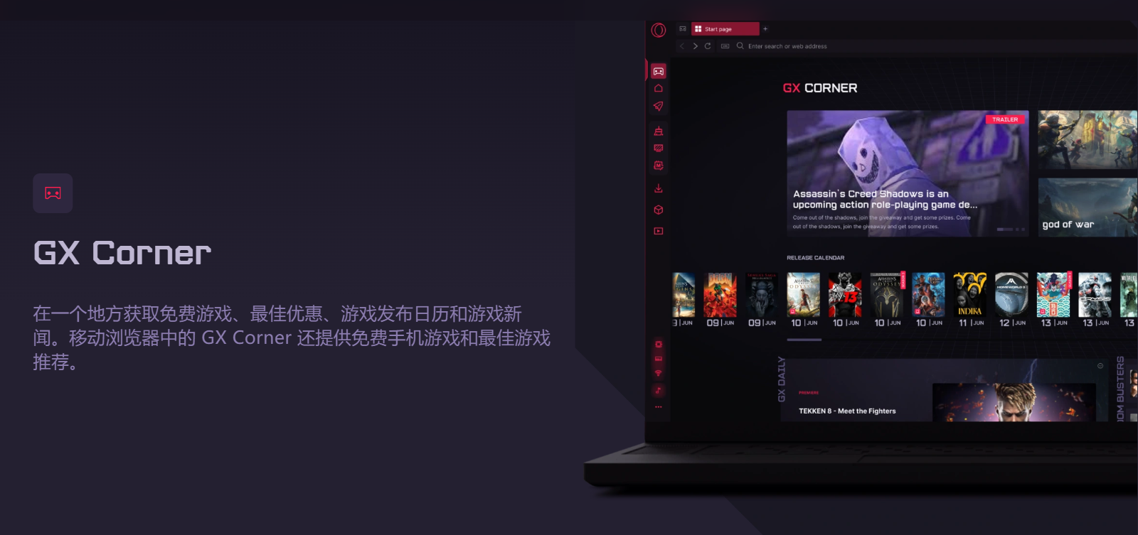 Opera GX电脑最新版是一款高性能的游戏浏览器,内置游戏模式优化性能,支持资源控制与多标签分组管理,提供内存优化工具和省电模式,集成助手与跨设备同步功能,提升网页浏览与游戏体验。接下来就帮助大家了解Opera GX电脑最新版的功能及使用方法。