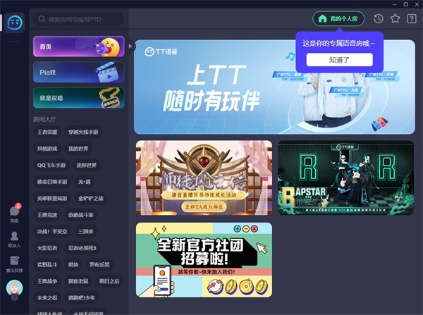 TT语音电脑开黑版是游戏玩家高效协作与娱乐互动的首选工具,大家可以在此寻找可靠车队,上车和同好闷一起并肩战斗,记得打开麦克风交流,时刻沟通调整作战策略,争取我方队伍能够把把赢得比赛,感兴趣的玩家不要错过了。