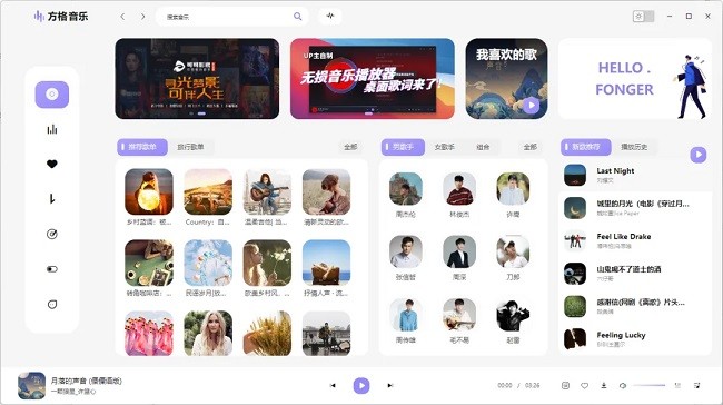 方格音乐1.5.5下载安装最新版本是一个免费无损音乐播放器,它整合了多个主流音乐平台上的资源,还支持导入外部歌单,这样你想听什么歌都可以找到了,并且播放音质很棒,能够满足发烧友对音质的极致追求,让你的耳朵沉浸式听歌。