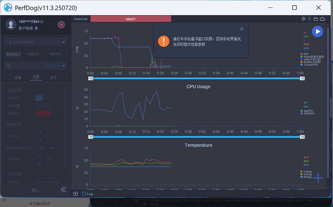 2、使用该软件时,用户只需在电脑上安装客户端并通过USB或Wi-Fi连接手机,即可开始采集包括帧率、CPU占用、内存消耗和网络流量在内的多种性能数据。