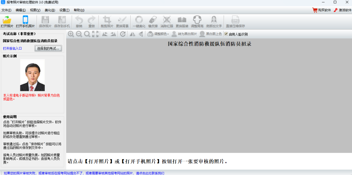 报名照片审核处理工具是一款可以对证件照的标准进行审核的软件,提供了相当专业的审核功能,可以轻松的判断自己的证件照是否能够通过申猴,操作起来非常的简单,可以根据要求来进行审核和处理,帮助用户轻松进行判断,快来下载试试吧!