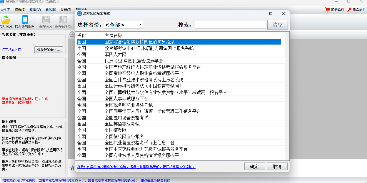 提供了非常全面的各种拜托你的考试,可以根据不同的考试来对证件照审核。