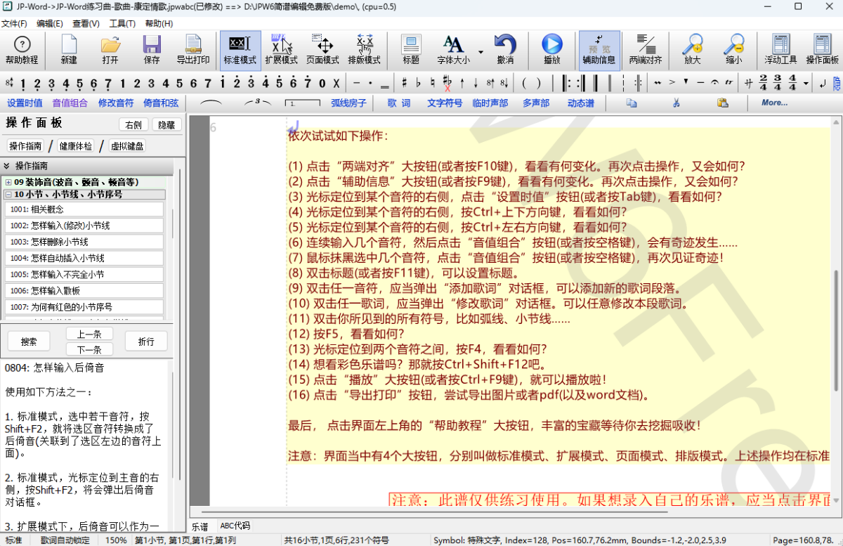jpword简谱软件采用了所见即所得的编辑模式,操作界面跟Word高度相似,大家可以像打字一样输入音符,操作起来十分方便,还可以实时预览排版,发现问题就可以及时修改,同时也可以用快捷键来复制粘贴乐谱片段,极大地提升了创作效率。