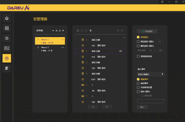 提供了一个宏管理器,可以设置各种鼠标宏进行保存,在后续就可以进行使用。