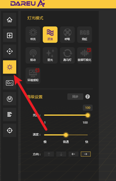 1、打开软件,选中左侧的太阳图标,进入灯光模式。