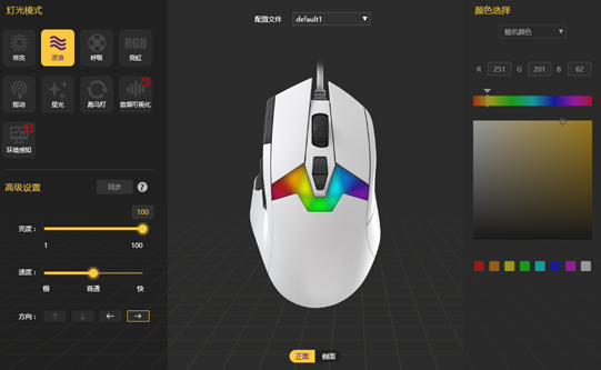 2、接着就可以根据需要来对灯光亮度、速度和颜色等内容进行设置。