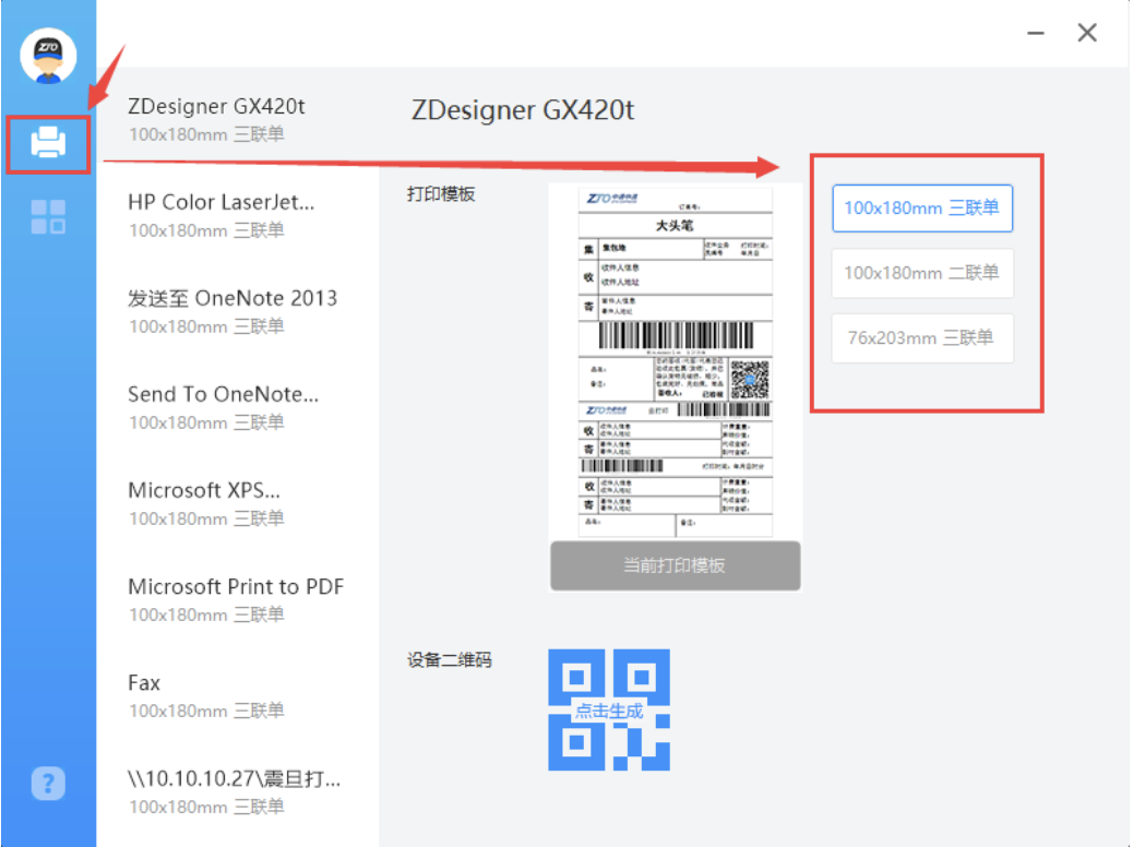 3、目前支持100*180三联单、100*180二联单、76*203的三联小面单。
