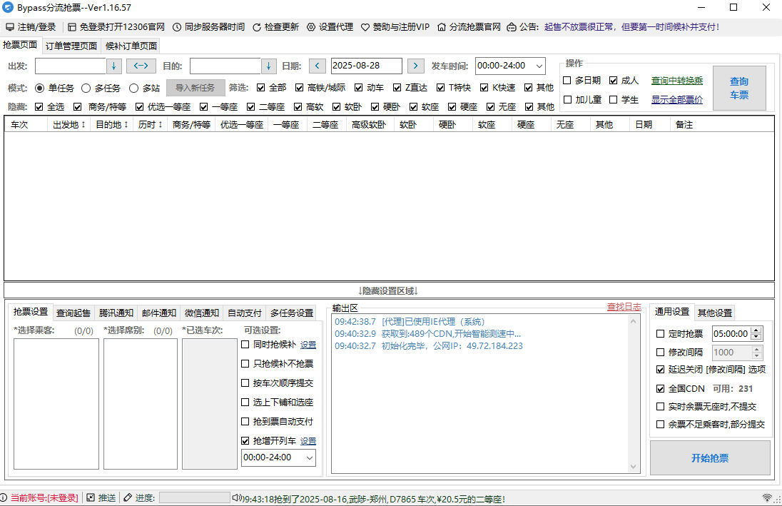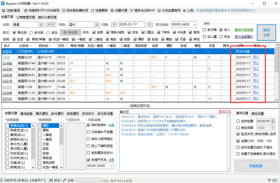 提供了非常高速化的抢票效果,可以在短时间内识别指定的车次并开始抢票。