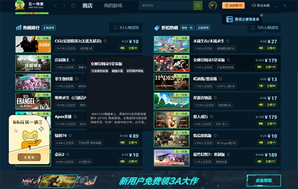 每日更新数百款付费游戏折扣资源,涵盖Steam/Epic等平台大作,新人注册可免费领取热门游戏。