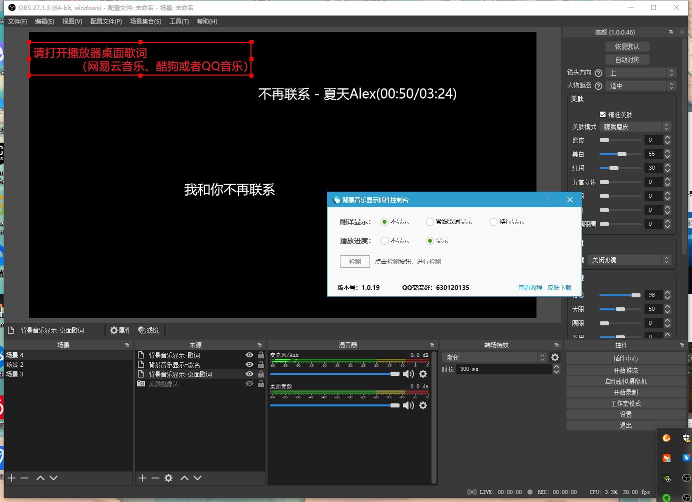 obs背景音乐显示插件是一个专门控制直播间背景音乐的工具,直播可以在直播画面上放上歌词,确保粉丝们可以听清楚当前唱的歌,尤其是音乐主播,非常有必要使用这个插件,可以积极调动粉丝情绪,让他们牢牢守着你的直播间,大家一起来听歌唱歌。