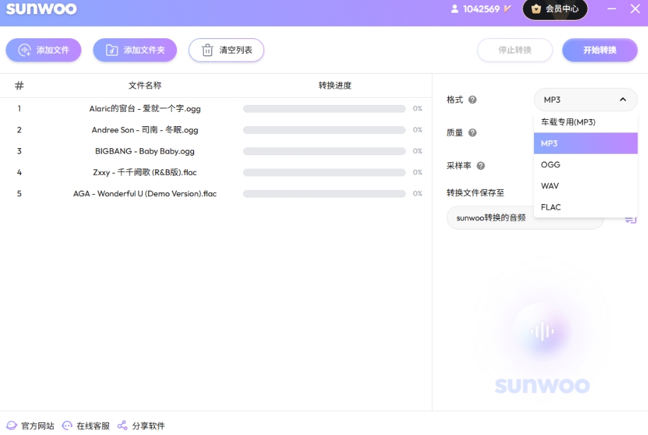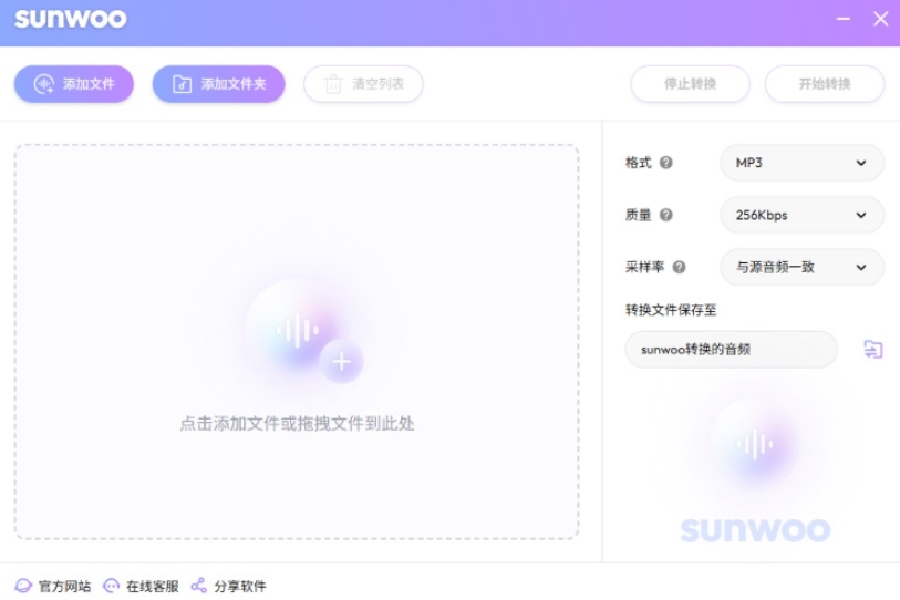sunwoo音频格式转换器官网版是一款实用的音频处理工具,支持多种格式转换批量操作音质调节剪辑合并,兼容多设备,操作灵活,无需付费,满足音乐爱好者和办公需求,接下来就帮助大家了解sunwoo音频格式转换器官网版的功能及使用方法。