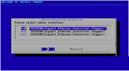 8、等待几秒后进入管理网卡设置界面,默认选择第一块网卡 em0,点击 “OK”。
