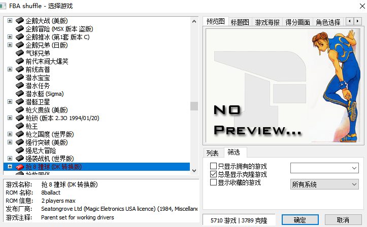 FBA shuffle汉化版是一款专门用来游玩街机游戏的模拟器,基本上各种类型的街机游戏都能使用该软件运行。软件会将游戏的名字和发行厂商等信息全部都显示出来,让用户了解,防止启动到其他的游戏,非常好用。