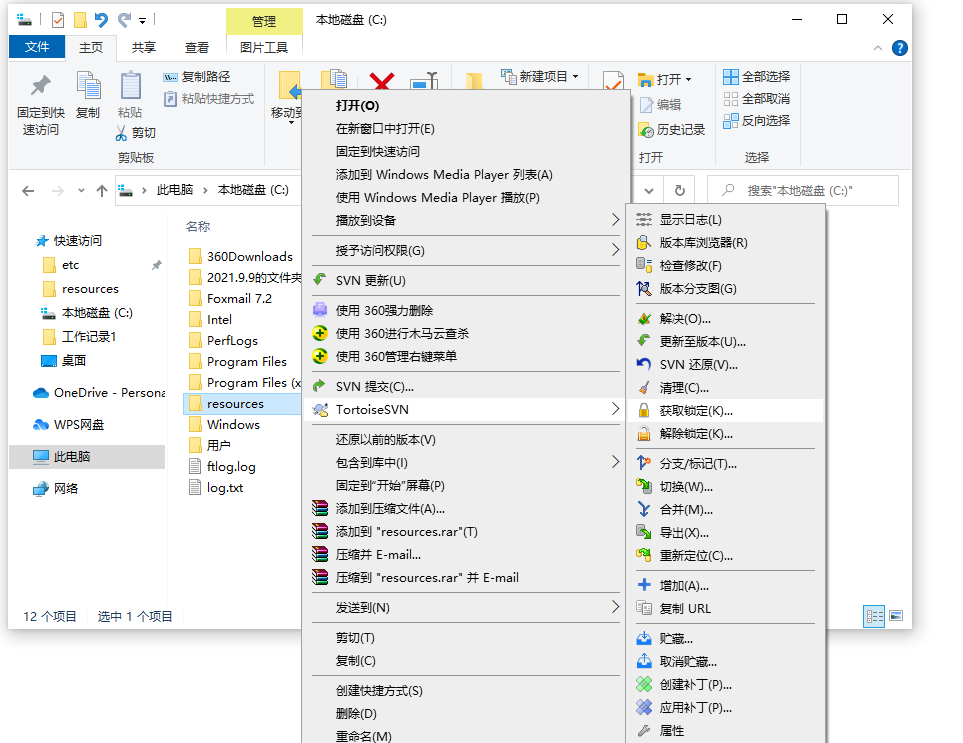 2、然后右键点击就可以利用其中的SVN进行处理了。