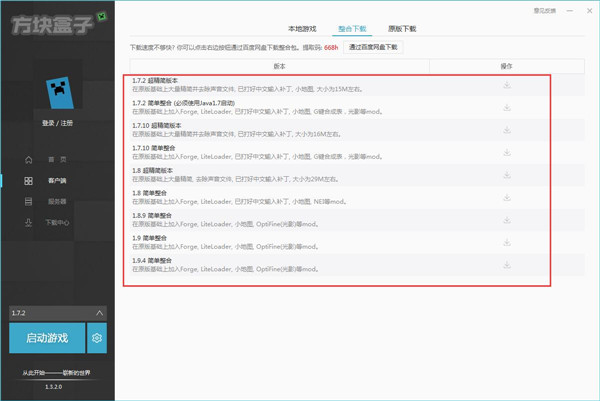 2、选择需要的《我的世界》版本,下载后自动添加至本地游戏库,已下载的版本可手动添加到游戏库;