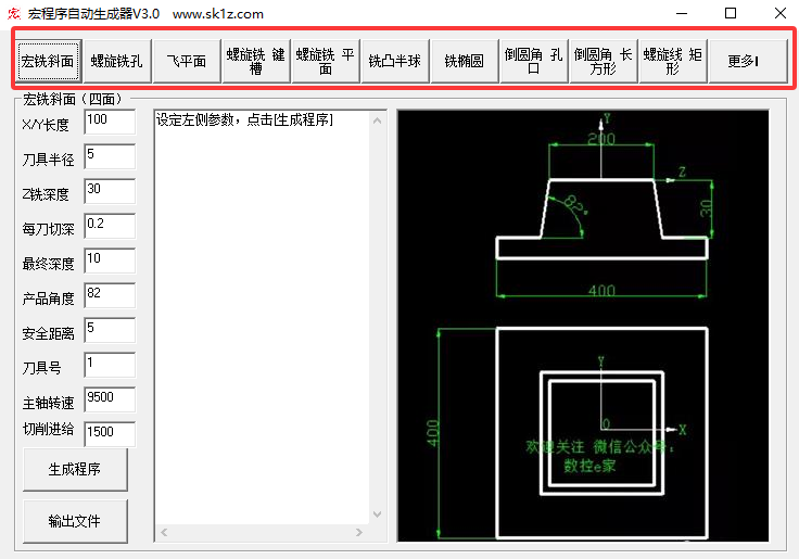 数控宏程序自动生成器是一款功能非常强大的cnc数控工具,这款软件当中提供的功能能够完成多种不同类型的加工任务,让用户在其中能够选择种地的程序加工,这样就可以依次的点击来进行相关CNC的加工操作,从而带来便捷性。