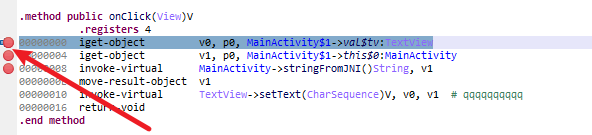 1、打开软件,找到需要进行反编译的apk,进入到bytecode界面,在目标位置下断点。