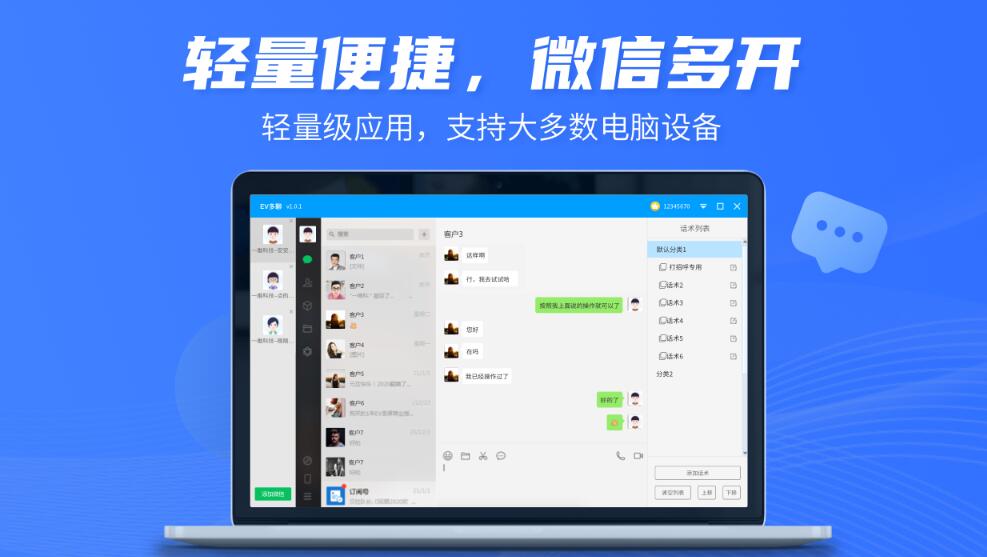 EV多聊电脑版是一款便捷的多账号聊天管理软件,支持多平台账号同时在线,可一键切换聊天窗口,消息集中管理避免频繁登录,提升沟通效率,适用于需要多账号协同的办公或社交场景,接下来就帮助大家了解EV多聊电脑版的功能及使用方法。