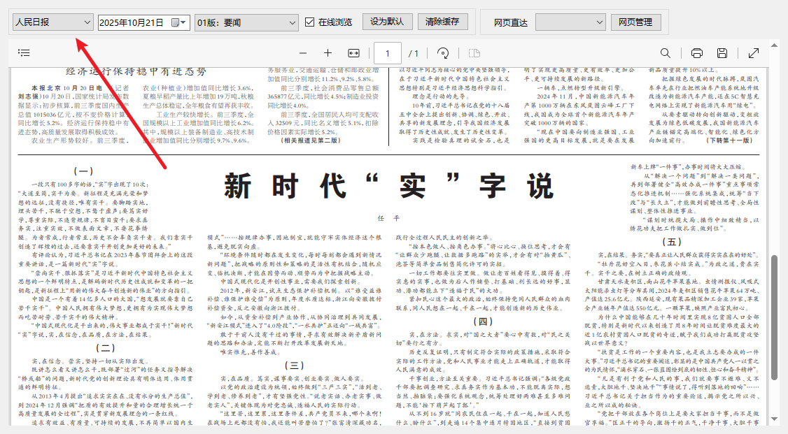3、切换完成后,就可以查看对应的报纸内容了。