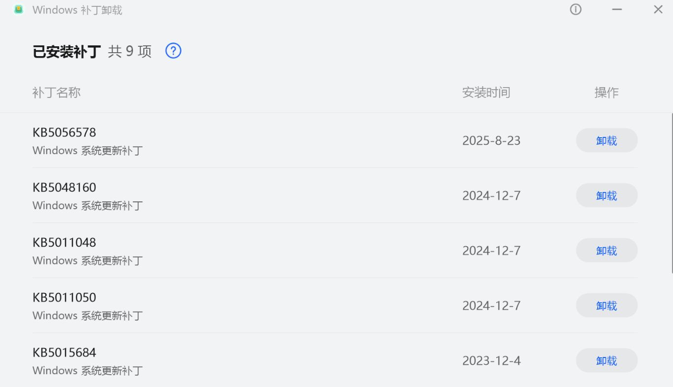 主要是用于进行当前系统当中各种不同补丁卸载的,使得电脑能够恢复正常的空间。