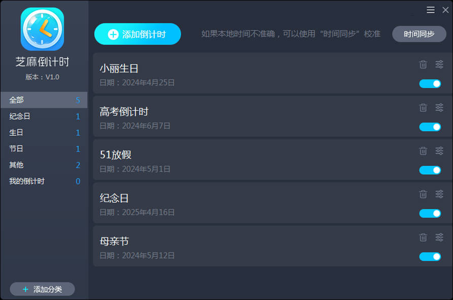 可以同时添加多个倒计时任务,在桌面同步显示,避免遗漏关键节点。