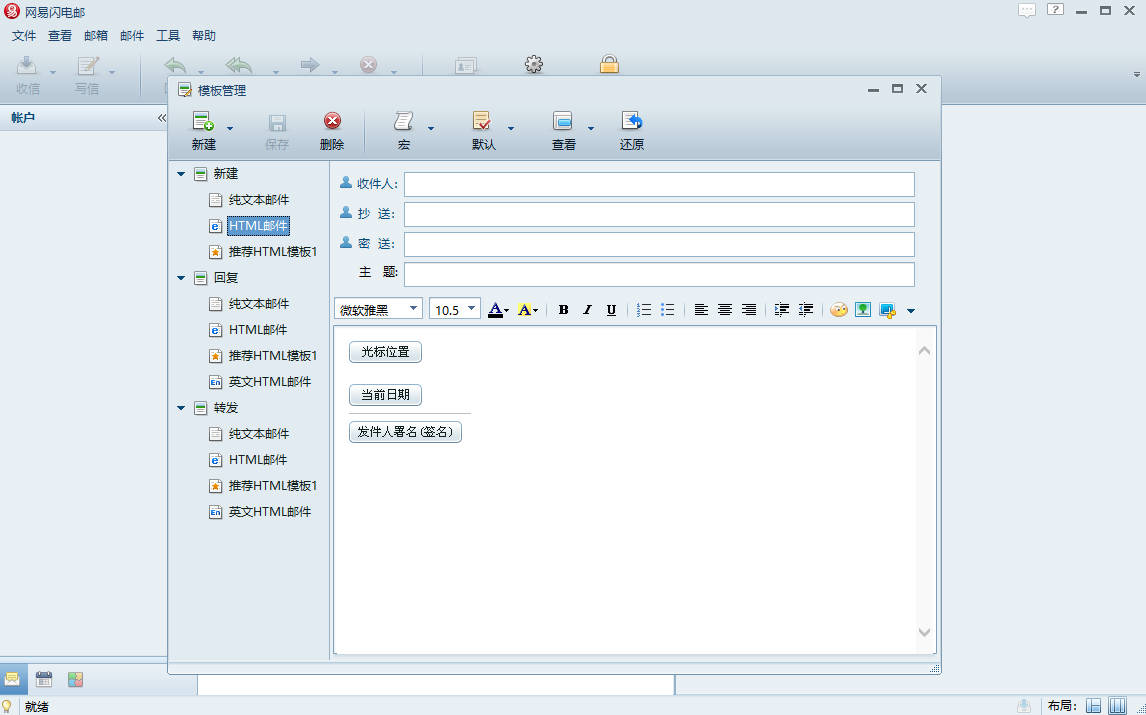 提供多种个性化皮肤和信纸模板供用户选择,让邮件界面和内容更具个人特色。