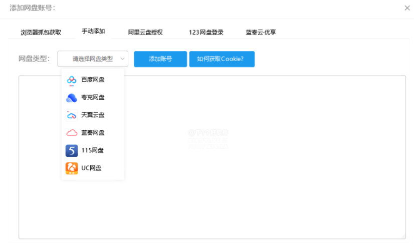 能够兼容目前市面上主流的各种不同网盘,都可以添加账号来对网盘内容管理。