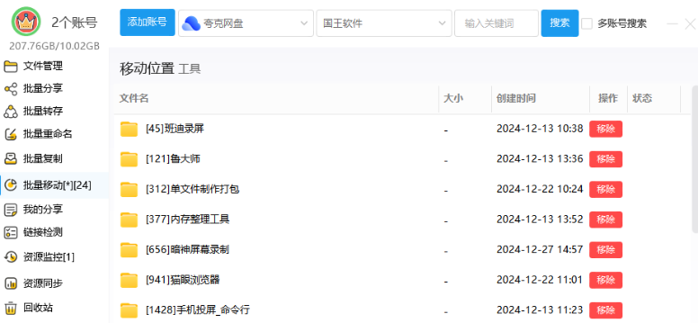 PanTools全功能版是一款功能非常强大的网盘管理工具,这款软件当中支持添加目前市面上多种不同的网盘账号,可以快速地读取其中的相关数据,这样就能够更加方便的进行数据整理,从而能够呈现出自己需要的网盘资源。